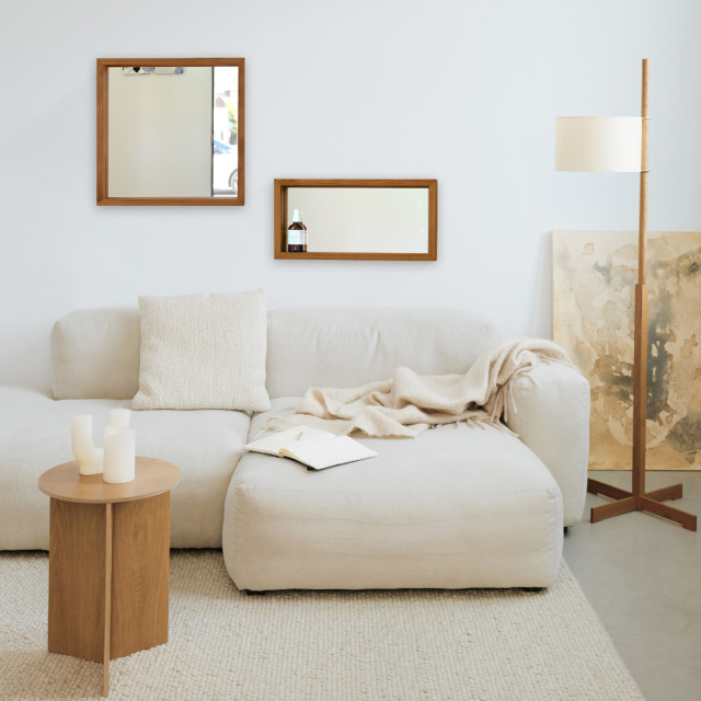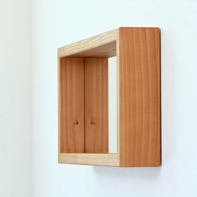 こうした大切な森林資源を守り、仕入れた木材を使い尽くすというコンセプトで作られたBOXYミラーは、
